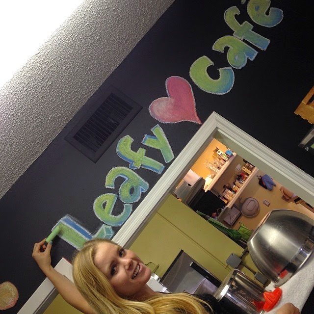 | the newly-painted Leafy Cafe with Hannah helping with the decor! |